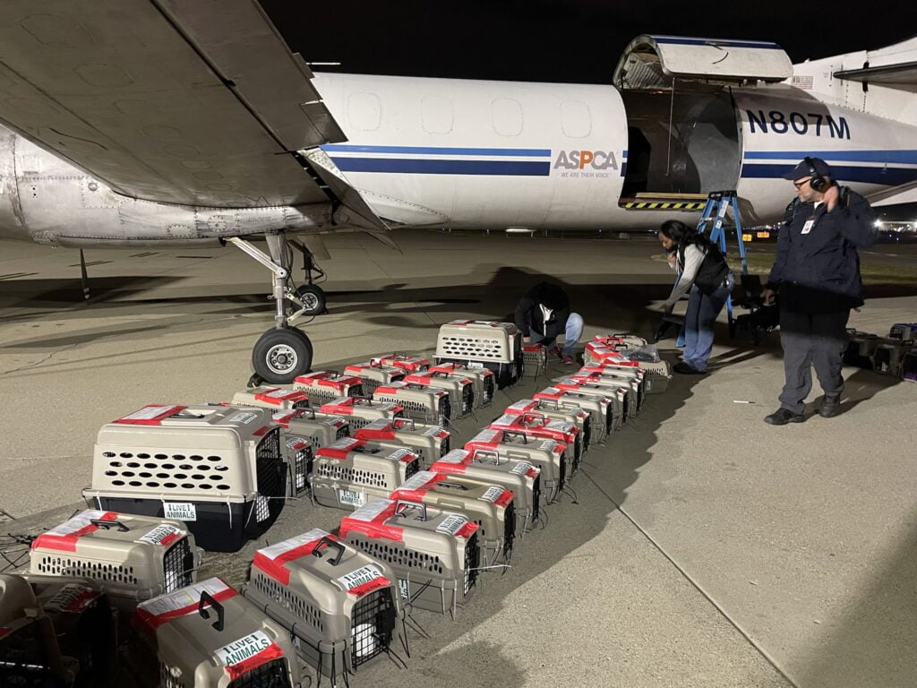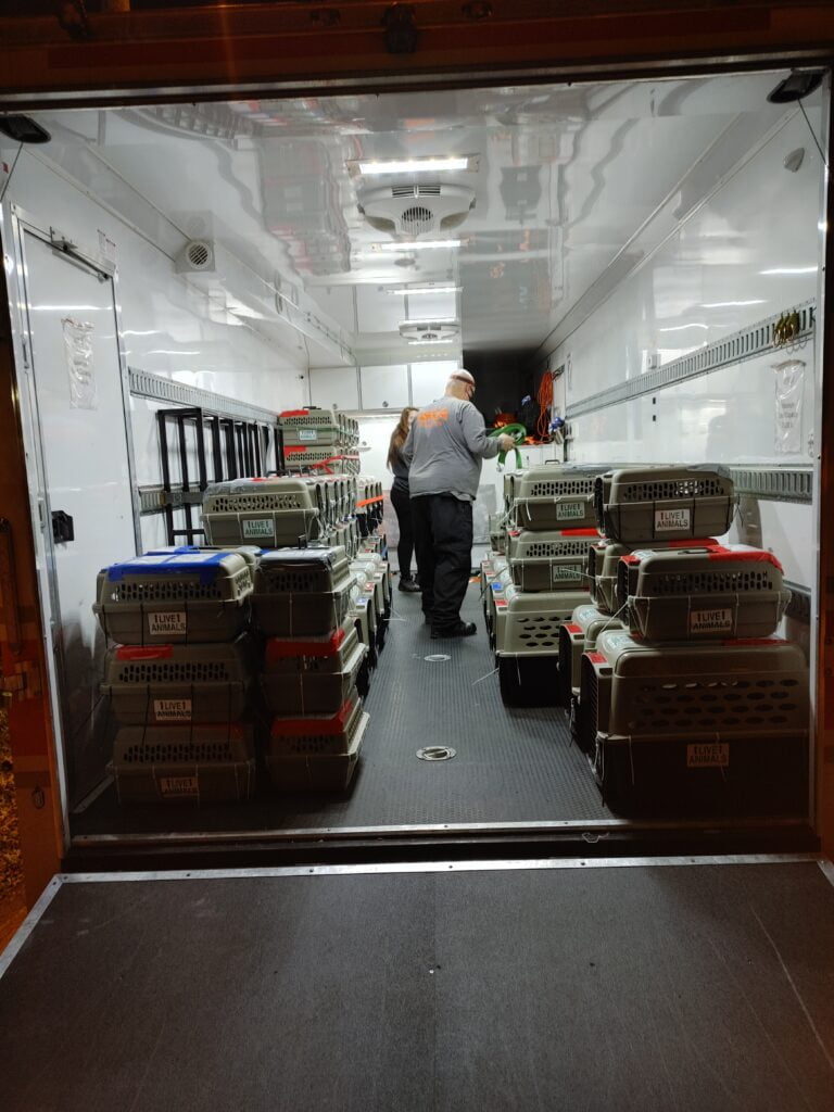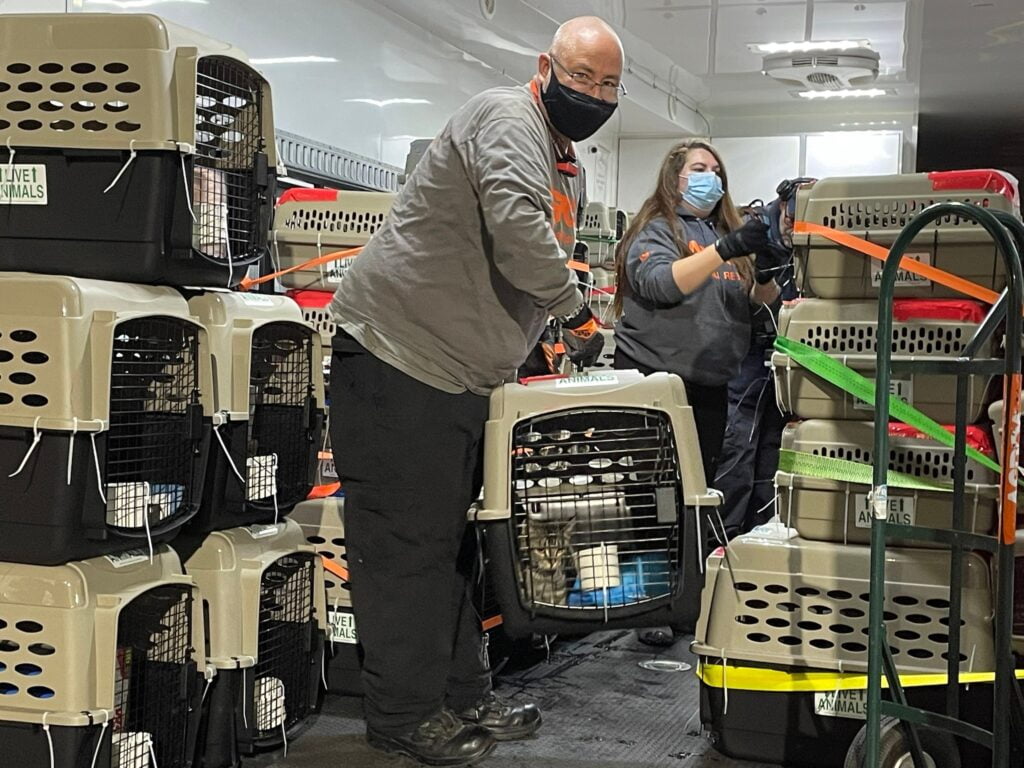 ASPCA National Field Response Team preparing the cats to be transported to the airport
