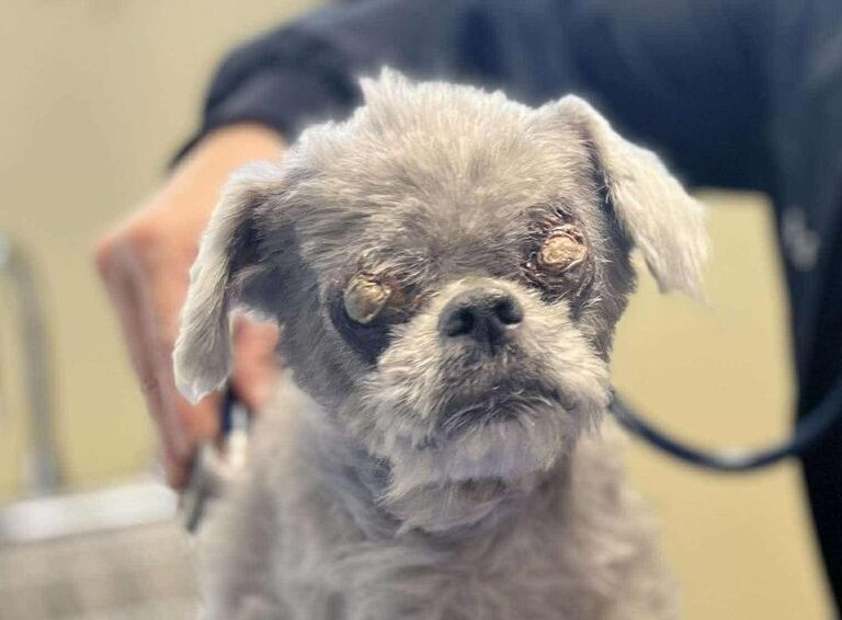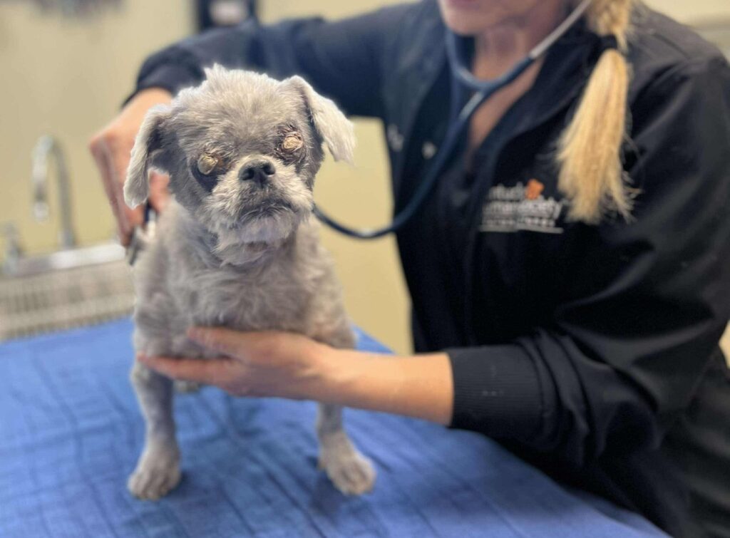 Harold, a seven-year-old Shih Tzu mix, recently came to our Sam Swope Pet Treatment and Lifesaving Center after he was found as a stray by Louisville Metro Animal Services. His condition is simply heartbreaking. Harold’s eyes were swollen and protruding from the sockets, leaving him blind. We can’t imagine the pain and confusion that poor Harold has been enduring while fending for himself on the streets.