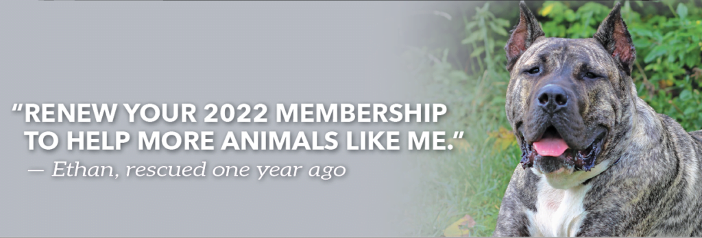 P.S. Please renew your membership in honor of Ethan’s rescue anniversary with your 2022 annual membership gift.