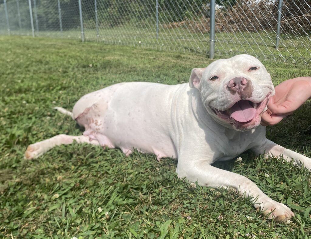 Charlotte came to KHS last week with a severe injury to her back right leg, resulting in complete loss of blood flow. This poor dog’s leg tissue was rotting, infected and maggot-infested, and would have surely taken her life without immediate intervention. We performed an emergency amputation surgery to remove Charlotte’s injured leg and thankfully, she is recovering well! Her infections are waning and in turn, Charlotte is becoming more playful and loving by the day. She is adjusting to three-legged life like a champ and will soon be ready for adoption.