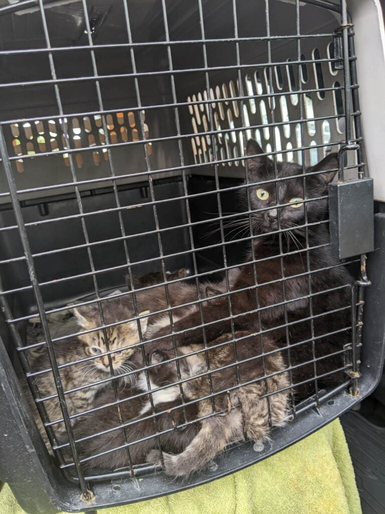 The Kentucky Humane Society (KHS) is on the ground in Eastern Kentucky through today, where it spent the past week supporting shelters, animals and communities impacted by the floods in 2022. Since Tuesday, KHS has made multiple trips to the region to deliver free pet veterinary services to local residents and deliver thousands of dollars of supplies and staff support to the Kentucky River Regional Animal Shetler (KRASS) and Floyd County Animal Shelter (FCAS). KHS is also transporting to KHS several animals in need of urgent medical care – a dog with tumors and Demodectic mange and a cat with a damaged eye and her kittens, some of whom are suffering from upper respiratory infections.