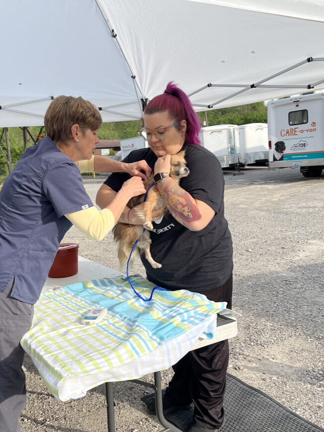 On Tuesday, KHS’ CARE-a-van mobile veterinary clinic arrived in Hazard, Kentucky to provide three days of free spay/neuter surgeries, free vaccines, free microchipping and pet wellness services for dogs and cats owned by residents of Perry, Breathitt, Letcher and Knott Counties.