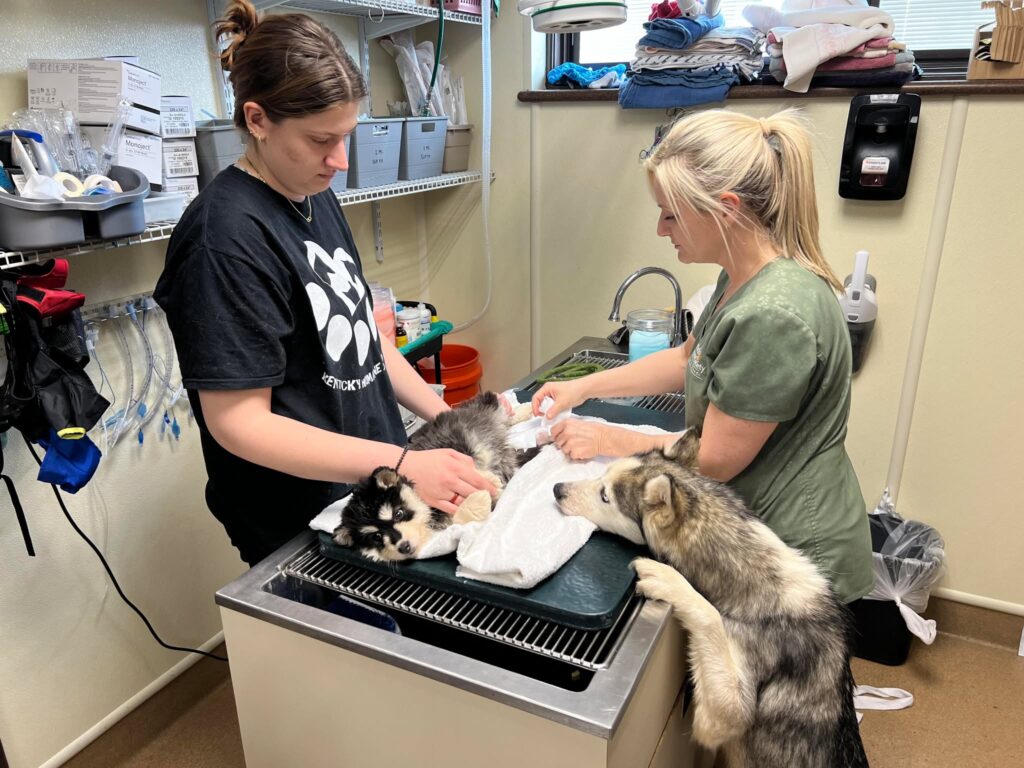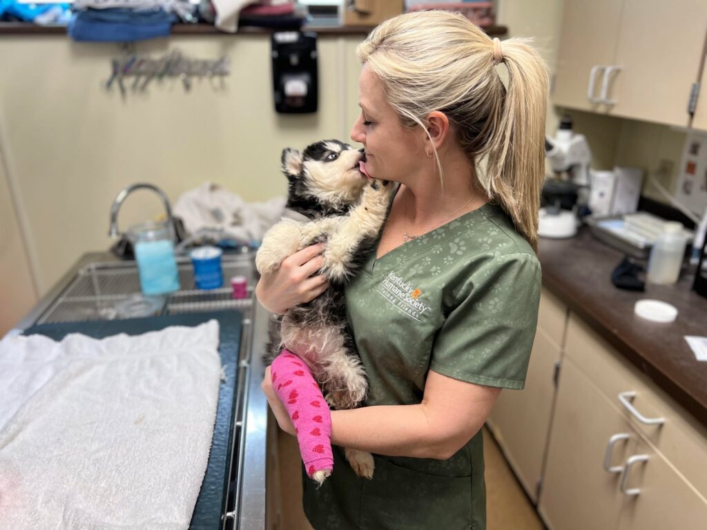 When the two arrived at KHS, they were in critical condition and needed immediate care in order to survive. While our veterinary team was cleaning and wrapping Matilda’s leg wounds, we heard the gut-wrenching screams of Miss Honey from down the hall. We rushed to comfort her, realizing the two had likely never been apart. Once Matilda’s injured leg was wrapped up and safe from the elements, we reunited her with her mama.