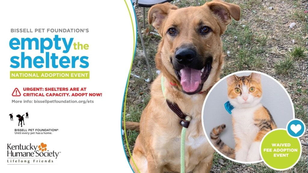 The Kentucky Humane Society is thrilled to announce our participation in the BISSELL Pet Foundation’s national “Empty the Shelters” event! From this Thursday, October 5 through Saturday, October 14, KHS is waiving adoption fees for all adult dogs and cats (1 year and older).