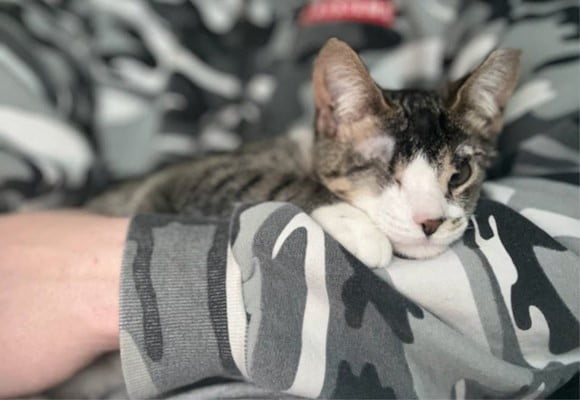 We recently introduced you to Jewel after she came to KHS suffering from eyelid agenesis. This birth defect causes abnormal eyelid development, and, in Jewel’s case, left her without an eyelid. Dr. Bewley successfully performed a lip commissure to eyelid transposition procedure, which used a portion of Jewel’s upper lip to graft a new eyelid on her right eye. Since then, Jewel has been recovering peacefully in a loving foster home and has taken great strides! Jewel recently visited our veterinary team to have her sutures removed, and they were very pleased to see her blinking with ease. Most importantly, she is no longer at risk of developing blindness and can run, play and sleep without fighting the constant irritation and pain caused by her missing eyelid. This sweet kitten will soon be ready to find a forever home, but for now she will continue recovering with her foster caregivers. Thank you for your continued support of animals like Jewel – we couldn’t do this lifesaving work without you!