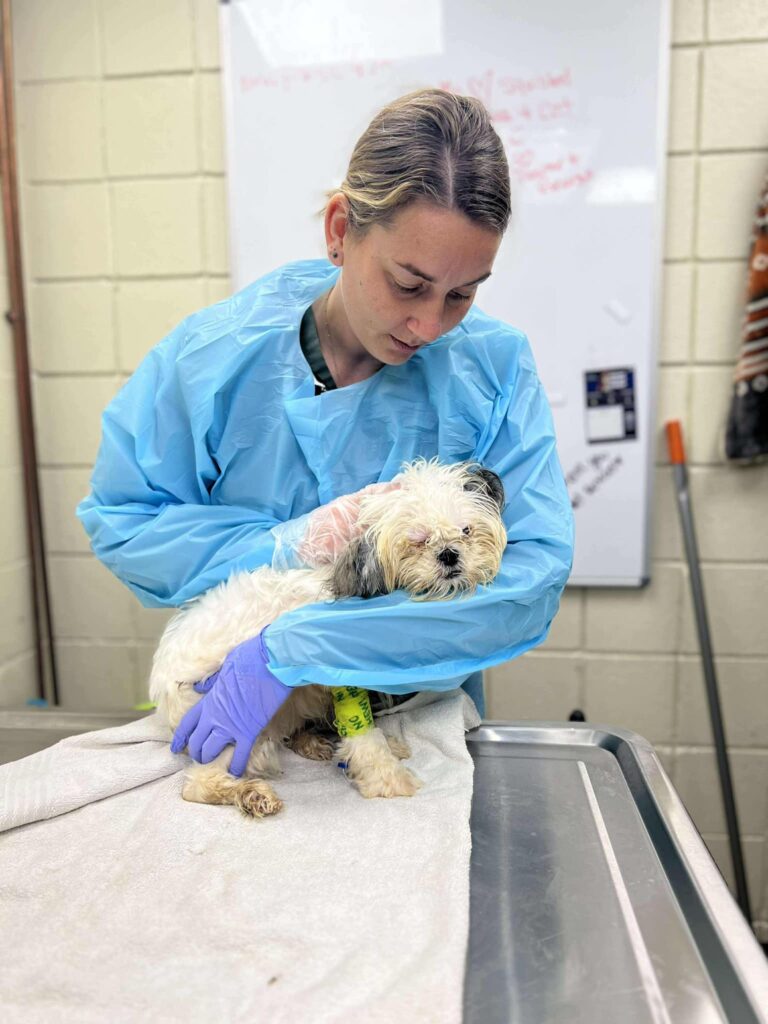 Fluffernutter, an eight-month-old Shih Tzu puppy, was recently rushed to our Sam Swope Pet Treatment and Lifesaving Center fighting for her life with Parvovirus (Parvo) – an extremely contagious virus that causes intestinal damage, dehydration and secondary infections, and often leads to death for unvaccinated dogs. Thankfully, KHS has a dedicated Parvo Quarantine Ward, allowing us to provide the specialized care she urgently needs.