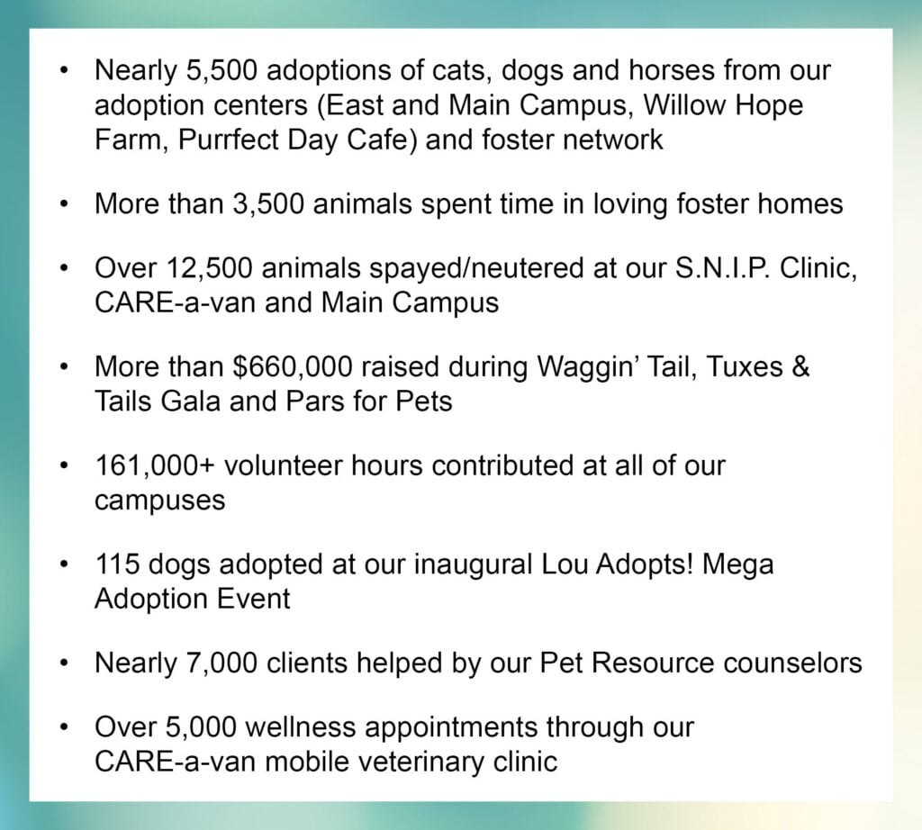 Dear Friends, As 2023 comes to an end, I’m thrilled to share just a few of the lifesaving successes we’ve achieved together at the Kentucky Humane Society this year.