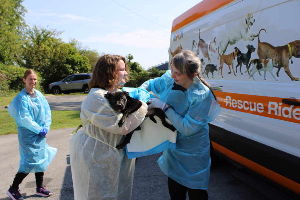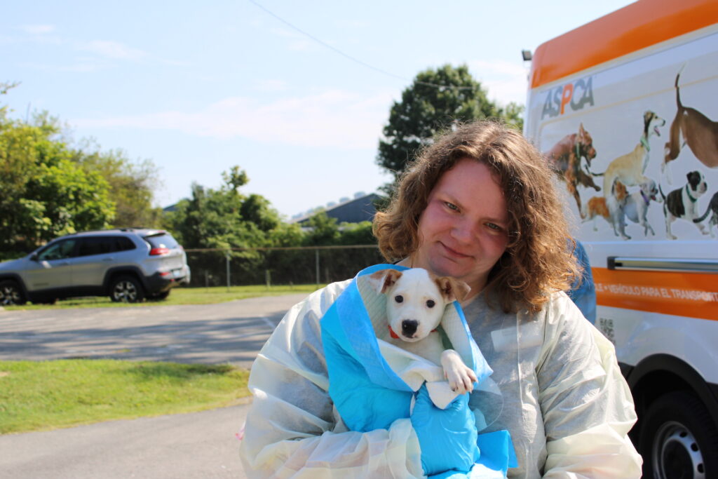 Last week, 14 small dogs and puppies were transported to our Sam Swope Pet Treatment and Lifesaving Center by the ASPCA after they were affected by Tropical Storm Debby. These poor pups were evacuated from the Humane Society of Valdosta in Lowndes County, Georgia, after their shelter and community experienced severe storm damage. By taking in these 14 dogs – all of which were unowned and in the shelter before the storms hit – KHS helped create vital shelter space for animals who were displaced during Tropical Storm Debby. Thankfully, most of these new arrivals seem stable and comfortable. However. they will still require medical and behavioral assessments before being made available for adoption in coming weeks.