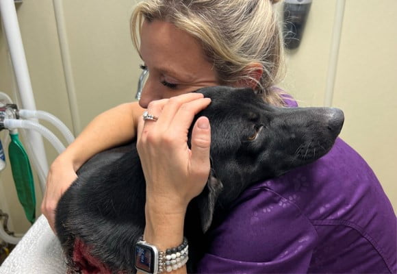 We’ve named her Wonder Woman, in hopes of inspiring her to remain strong. Despite the pain we know she must feel, Wonder Woman has been extremely affectionate with our staff, seeking comfort in Dr. Bewley’s arms. She will be closely monitored over the weekend to ensure she remains stable and alert. We ask for you to consider a donation to support the lifesaving medical care we give to animals like Wonder Woman who come to KHS with emergency medical needs.