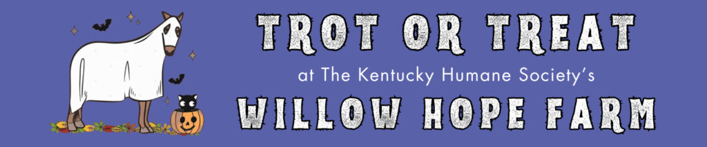 Attention Boos and Ghouls! You are invited to join the Kentucky Humane Society Equine CARE family on Saturday, October 19th from 3:00 – 7:00 p.m. for our “Trot or Treat” at Willow Hope Farm in Simpsonville, KY. Our 42-acre farm is home to about 30 horses at any given time, and you will get a firsthand look at the equines in our care while also learning about our equine program. We will offer equine demonstrations, a tour of the farm, cuddle time with some KHS puppies, festive fun activities and fall crafts for the whole family. Come dressed in your Halloween best and be sure to bring your trick-or-treat bags. We’re sure you’re in for a spooky good time! No alcoholic beverage is permitted. No sandals or flip flops, closed-toed shoes only.