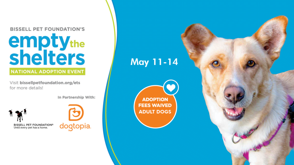 BISSELL Pet Foundation, a national animal welfare organization dedicated to ending pet homelessness, is teaming up with Dogtopia for the foundation’s first “Empty the Shelters” national adoption event of 2023. From May 1 to May 15, BISSELL Pet Foundation’s Spring National “Empty the Shelters” will occur at more than 350 shelters in 45 states with pets available for adoption for just $50 or less, including the Kentucky Humane Society.