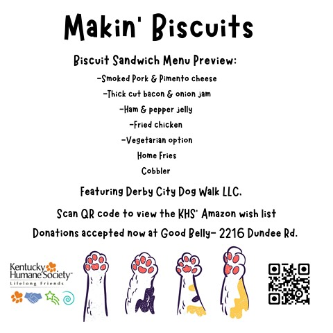 Come out to Good Belly Sandwich Shop to enjoy a special menu and support shelter animals! KHS will be on site with an informational booth and will be accepting physical donations in person.