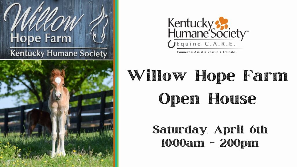 We’re hosting an Open House at our Willow Hope Farm on Saturday, April 6 and you’re invited! Stop by between 10 a.m.-2 p.m. to enjoy the serenity of the farm and learn about our Equine C.A.R.E. programs.