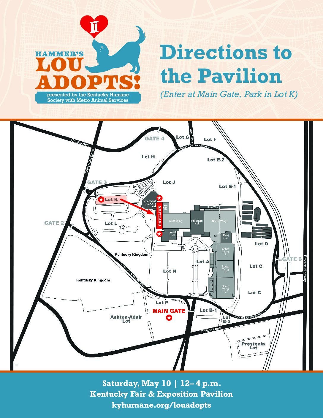 The Kentucky Humane Society (KHS) with Metro Animal Services (MAS) is hosting the third annual Hammer’s Lou Adopts, a mega adoption event aiming to find loving homes for nearly 200 adoptable local dogs and puppies. Once again sponsored by Isaacs & Isaacs Personal Injury Lawyers, Hammer’s Lou Adopts will offer on-site adoptions at the Kentucky Fair and Exposition Center Pavilion on Saturday, May 10 from noon – 4:00 p.m. After finding homes for 270 dogs in the last two years, we are excited to find homes for more dogs!